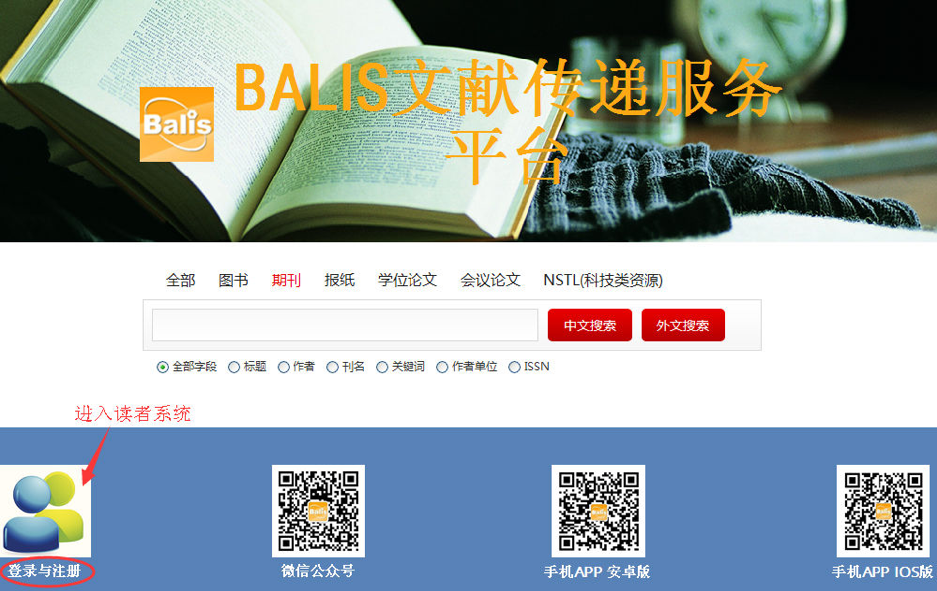 另外,BALIS原文传递服务平台还推出了微信公众号和手机APP,在微信里搜索“BALIS原文传递”关注公众号或者扫描二维码下载,即可使用BALIS文献传递服务。(ios版尚未开通)