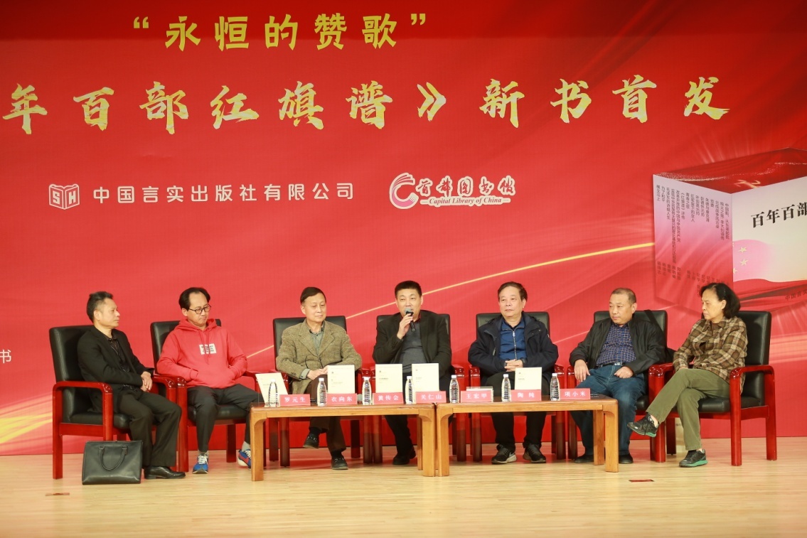 4月10日14时30分,首都图书馆与中国言实出版社联合主办的“永恒的赞歌——‘百年百部红旗谱’中的共产党人”系列讲座的首场活动暨《百年百部红旗谱》新书分享会于首都图书馆A座报告厅拉开序幕,中国言实出版社社长、一级作家、编审王昕朋,中国作家协会全委会委员、河北省作家协会主席、鲁迅文学奖得主关仁山,中国作协会员、鲁迅文学奖得主黄传会、王宏甲、衣向东,中国作协会员陶纯、项小米、罗元生和首都图书馆副馆长陈坚出席了本场活动。首图讲坛直播间、快手、微博、西瓜视频、哔哩哔哩及中国言实出版社淘宝直播间6家平台同步直播。线上读者还纷纷向作家们提出问题,交流在线上线下延续。