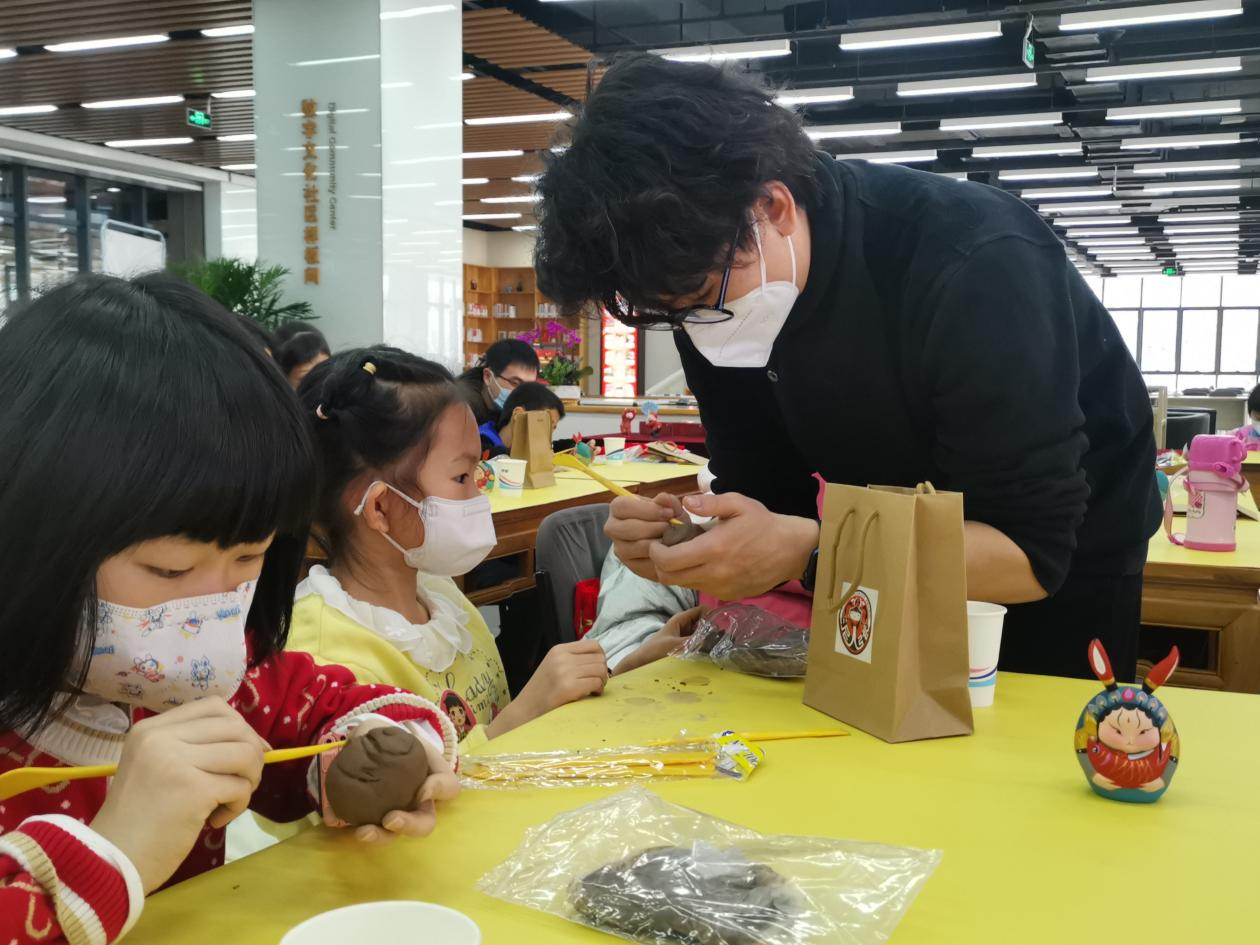 泥人张传承人张昊带领孩子们制作“锦鲤兔”