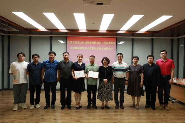 2023年7月13日,北京正元凯力科技发展有限公司、沙万泉先生向首都图书馆及北京图书馆协会成员单位的图书捐赠仪式在我馆京华厅会议室举行。