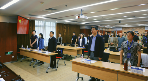开班仪式上,全体人员齐唱国歌
