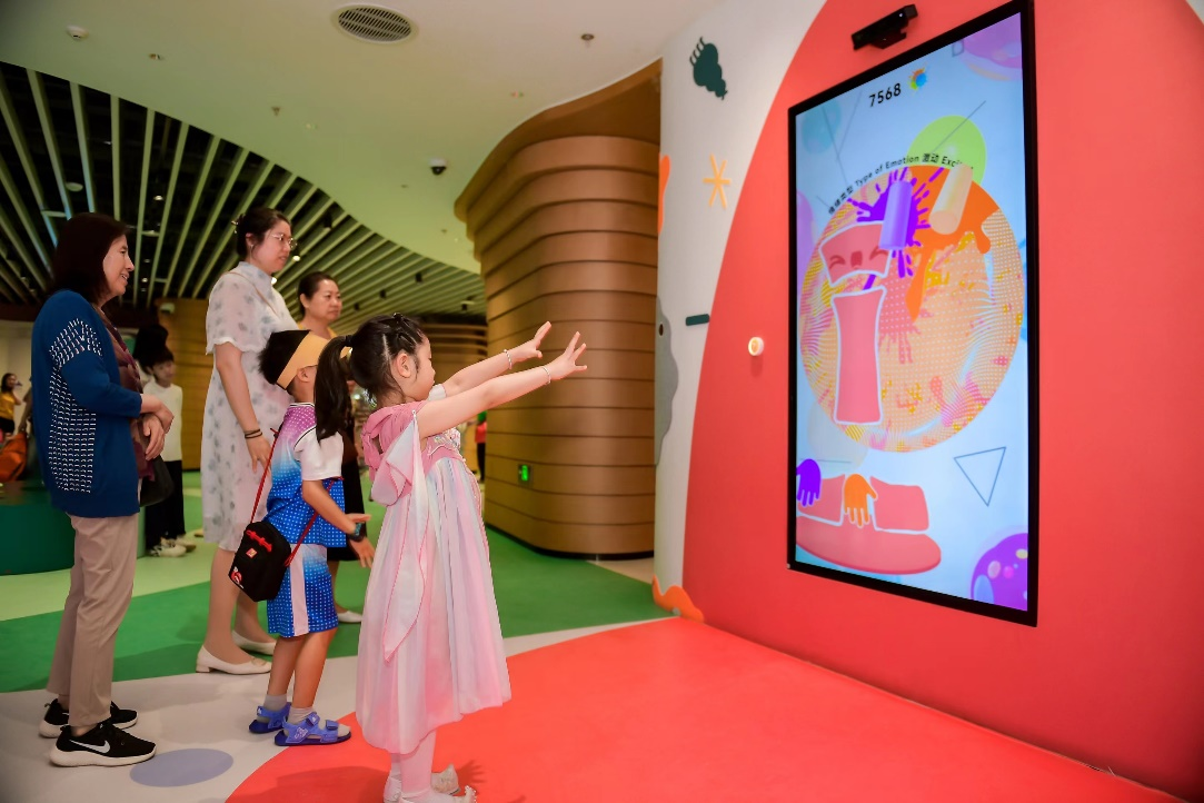 (小读者在少年儿童馆体验智慧展陈)