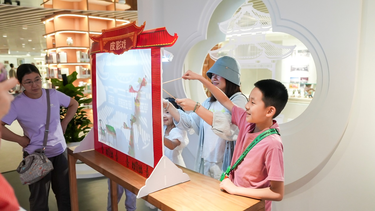 (读者在非遗文献馆体验皮影戏)