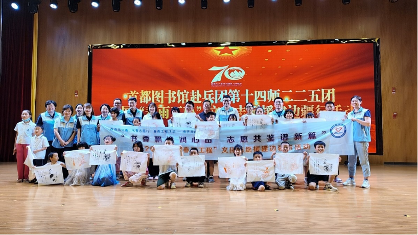 交流互鉴,行稳致远。此次文化志愿援建边疆行的志愿者们走进图书馆、兵团、文化馆、社区,举办10余场内容丰富的业务分享及形式多样的体验活动,助力和田人民在阅读中开拓视野、感知传统文化之魂、涵养新时代精神。同时也收获了孩子们的欢乐欣喜、体验了和田地区人民的热情,并为兵团故事和老兵精神所动容。