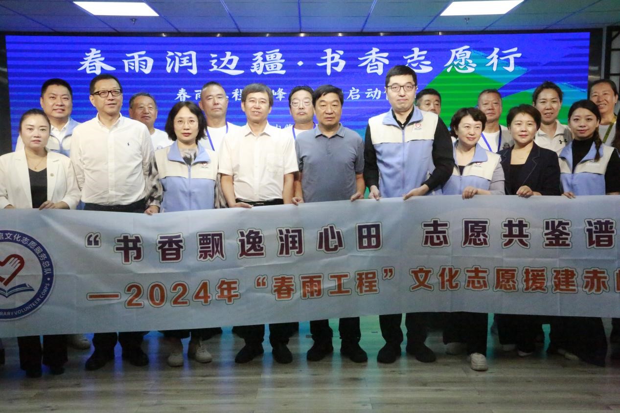 书香润心,“志”爱长存。8月17日上午,“春雨润边疆、书香志愿行”春雨工程活动赤峰行活动启动仪式在赤峰市图书馆松州书院内举办,京蒙两地图书馆馆员、专家志愿者、赤峰市当地读者以及自驾活动人家共同参与。