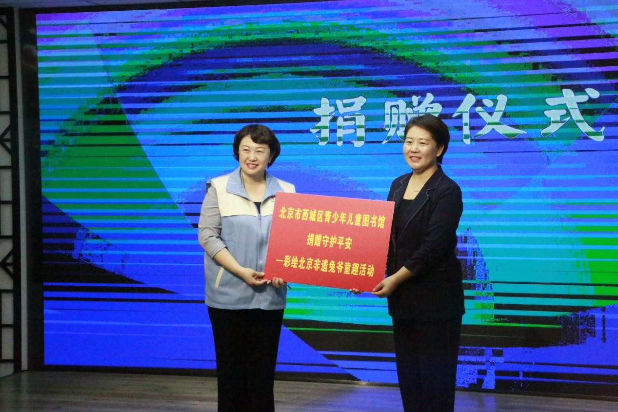 (安欣代表西城区青少年儿童图书馆向赤峰市图书馆捐赠非遗系列互动活动)