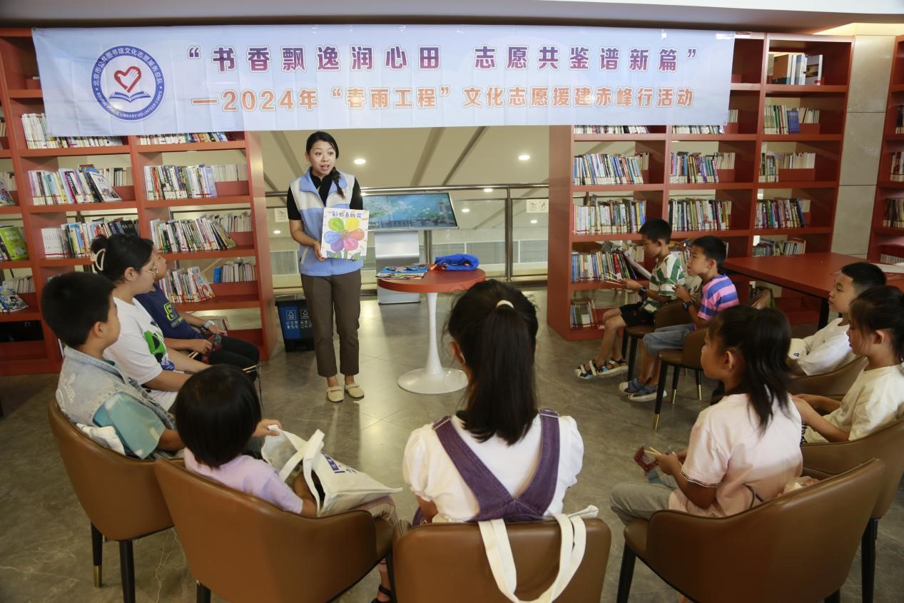 春雨润物细无声,志愿有情传书香。8月18日,由首都图书馆牵头,集结北京市公共图书馆文化志愿服务总队共同举办的2024年“春雨工程”志愿服务活动在赤峰圆满结束。这是“春雨工程”志愿服务活动首次来到内蒙,在京蒙两地图书馆馆员、专家志愿者、赤峰市当地读者以及自驾活动人家共同支持参与下,共同促进京蒙两地间的文化交流、资源共享、优势互补、互利共赢。本次志愿服务活动中,北京市公共图书馆文化志愿服务总队向赤峰市图书馆共计捐赠总价值7.4万元的图书2051册、价值18万元的“书香东城”数字阅读卡500张、分享非遗系列互动活动十余场。