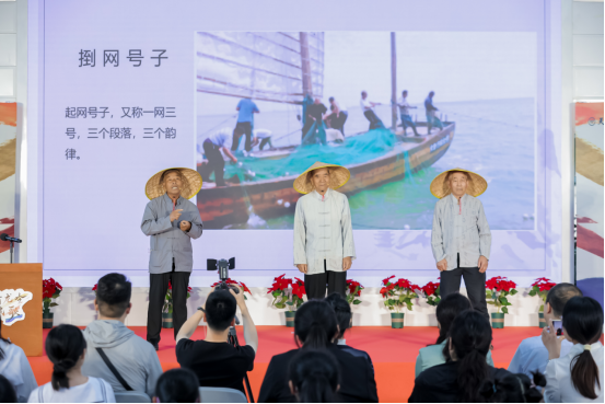 图:赵加岺、刘翠祥、刘翠波演唱渔家号子《捯网号子》