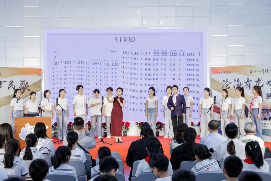 图:刘慧慧、赵天刃及天津师范大学学生演唱《十朵花》