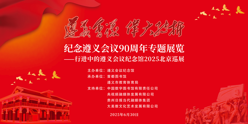 6月30日,“遵义会议 伟大转折 纪念遵义会议90周年专题展览——行进中的遵义会议纪念馆2025北京巡展”在北京城市图书馆地下一层公共区域开幕。本次展览由遵义会议纪念馆主办,首都图书馆、遵义市教育体育局承办,旨在纪念遵义会议90周年,弘扬长征精神与遵义会议精神,深化党史学习教育,推进城市文化交流融合。