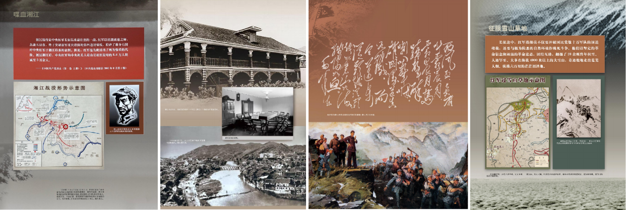 展览按照“战略转移 开始长征” “遵义会议 伟大转折” “四渡赤水 出奇制胜” “勇往直前 走向胜利” “遵义会议 精神永存”五大篇章,通过详实的文献资料以及珍贵的历史图片、影像资料,全方位再现了那段波澜壮阔的革命岁月。其中,“遵义会议 伟大转折”部分,展示了在红军严重受挫的危急关头,遵义会议的召开在军事指挥、党的建设、精神传承、历史进程等方面产生的伟大转折意义。“勇往直前 走向胜利”部分,巧渡金沙江中生死时速、强渡大渡河中铁索与血肉铺就的绝地反击、征服雪山草地中用信仰点燃濒死的躯体,让参观者仿佛置身那个激情燃烧的年代,体会着红军战士们坚定信念、不畏生死、突破绝境的精神力量。