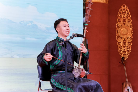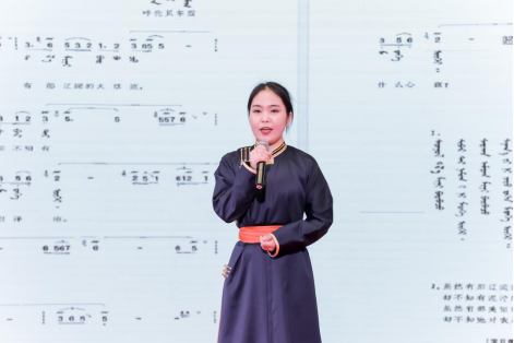 活动现场,内蒙古艺术剧院演员都贵玛以《辽阔的草原》开场,长调民歌传承人额尔敦苏和献唱《小黄马》,昭乌达民歌、阿拉善民歌传承人杭盖萨初日演绎《金色的圣山》,三组作品交相呼应,分别代表草原的东部、中部、西部。观众透过这幅“声音地图”,得以直观感知到游牧文明在多元水土中孕育的音乐基因。