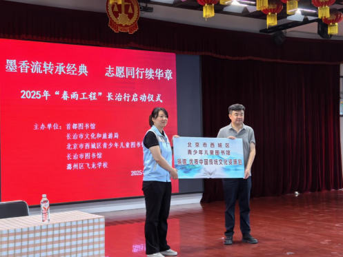 在文化滋润心田、志愿传递温情的七月,由首都图书馆精心策划组织的2025年“春雨工程”长治行活动于7月2日至4日顺利开展。首都图书馆携手北京市公共图书馆文化志愿服务总队西少图书馆分队及专家志愿者团队赴山西省长治市图书馆,捐赠图书2000册、优质中国传统文化资源包等丰富文化资源,举办非遗体验、主题讲座、馆员沙龙等10余场精彩的文化服务,吸引1000多人参与,为当地群众送去丰富的文化盛宴,助力公共文化服务体系建设,促进京晋文化交流与合作。