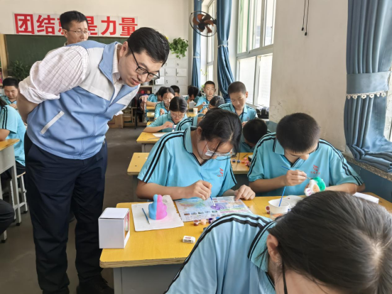 志愿服务团队在长治市飞龙学校与武乡县太行小学同步开展“巧手传非遗”体验活动,让北京兔儿爷制作和漆扇工艺两项非遗技艺走进校园,为当地同学们带来生动的传统文化课。在太行小学的教室里,志愿者指导着学生制作兔儿爷。“红袍金甲的兔儿爷要先用白泥打底,三瓣嘴得捏出上扬的弧度。”教室内弥漫着泥土清香,学生们专注地彩绘,描色,一个个憨态可掬的兔儿爷渐次诞生。在飞龙学校,漆艺传承人将桐油、矿物颜料在清水中晕染出斑斓纹路。“扇面入水的角度决定图案走向。”五年级学生在志愿者的指导下,将空白团扇缓缓浸入彩漆,瞬间绽放出如晚霞般的渐变效果。完成的作品在展架上徐徐转动,阳光在漆面上投下流动光斑。“自己做漆扇真有意思,这是我的扇子,漂亮吧!”参加活动的同学们开心地说。