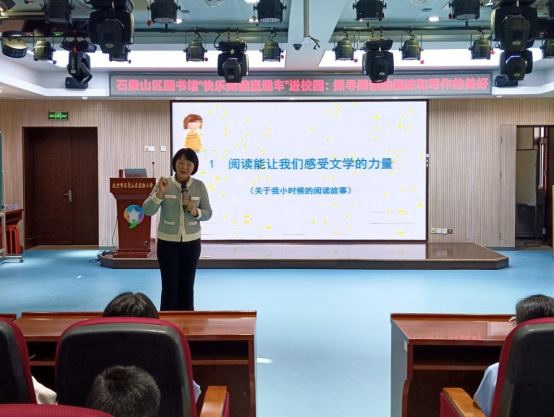 12月15日,石景山区图书馆“快乐阅读直通车”活动走进石景山区实验小学,为学生们带来“探寻阅读的趣味和写作的美好”主题讲座。活动邀请中国作协会员、儿童文学作家张菱儿老师主讲,张老师以生动的故事、实用的技巧,带领同学们穿梭于文学世界,解锁阅读与写作的无限智慧与美好。
